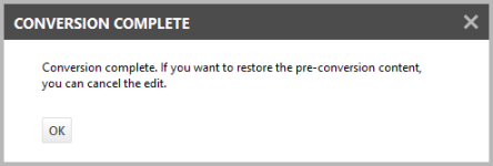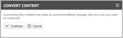 - Klicken Sie auf Fortfahren. Sie werden in einer Meldung darüber informiert, dass Sie den Inhalt vor der Konvertierung wiederherstellen können, indem Sie die Bearbeitung abbrechen.