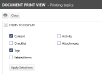 - Die Seite für die Druckansicht unterstützt das Anzeigen aller für die Beitragskategorie oder Dokumentkategorie ausgewählten Abschnitte. Jeder Benutzer kann auswählen, welche verfügbaren Abschnitte in der Druckansicht angezeigt und an den Drucker gesendet werden sollen. Der Abschnitt Allgemeine Informationen ist immer enthalten.