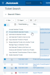 Wählen Sie in Tickettabellen mit einem Kontextmenü mehrere Tickets aus (indem Sie die Kästchen auf der linken Seite markieren), klicken Sie dann auf das Symbol für das Dropdown-Menü in der Auswahlspalte und wählen Sie Ausgewählte Tickets weiterleiten/ändern aus.