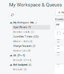 NAVIGATION Linkes Navigationsmenü > Service Desk > Ansicht > Mein Arbeitsbereich & Warteschlangen