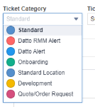 | Art der Überwachung (wird nur dann angezeigt, wenn die Datto RMM-Integration aktiviert ist) | Art der ÜberwachungDieses Feld wird auf Tickets angezeigt, wenn die Datto RMM-Integration aktiviert ist. In Datto RMM warnen Überwachungen Benutzer, sobald Komponenten fehlschlagen, bestimmte Ereignisse eintreten oder Leistungen unter einen festgelegten Grenzwert fallen. Es wird ausgefüllt, wenn ein Autotask-Ticket über eine Datto RMM-Warnung generiert wurde oder wenn das zugehörige Gerät ein Datto RMM-Gerät ist. |