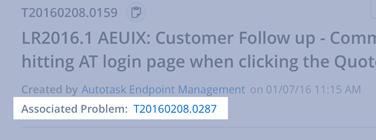 Diese Zeile ist nur bei Incident-Tickets vorhanden, die mit einem Problemticket verbunden sind. Wenn Sie auf den Ticketlink klicken, wird dadurch das Problemticket geöffnet. |