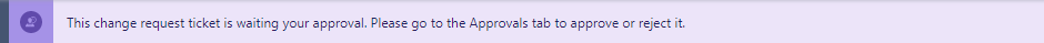 Diese Nachricht wird angezeigt, wenn Sie ein Change Request-Ticket anzeigen, das auf Ihre Genehmigung wartet. Sie erscheint nur dann, wenn die Change Management-Funktion aktiviert ist. Siehe Change Management. |