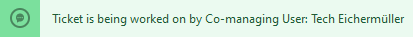 Diese Nachrichten erscheinen auf Tickets von Co-managed Firmen. Sie geben an, wer für die Arbeit am Ticket verantwortlich ist. |
