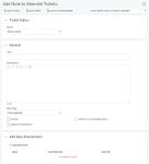 Auf Ticket-Tabellen können Sie die Option Notiz zu ausgewählten Tickets hinzufügen aus dem Massenmenü auswählen. Diese Auswahl öffnet eine Seite, die einen Teil der zuvor dokumentierten Felder enthält.