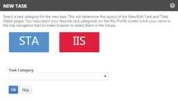 Wenn Sie Ihre Profileinstellungen so eingerichtet haben, dass Sie zur Auswahl einer Rubrik für neue Aufgaben aufgefordert werden, wird die Aufforderungsseite geöffnet.