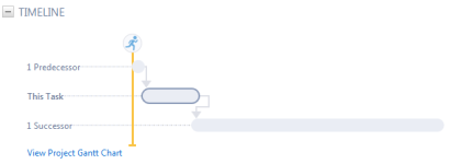 - Der Abschnitt „Zeitleiste“ auf der Aufgabenseite zeigt die Verknüpfungen zwischen der aktuellen Aufgabe und ihren Vorgängern und Nachfolgern an.