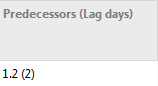 - Die Spalte Vorgänger zeigt die ID-Nummern für jede Vorgängeraufgabe oder jedes Vorgängerproblem sowie die Anzahl der Verzögerungstage (in Klammern) an.