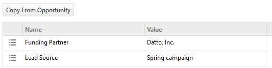 - Klicken Sie auf Aus Verkaufschance kopieren. Der Assistent: Kopieren von benutzerdefinierten Attributen wird geöffnet.