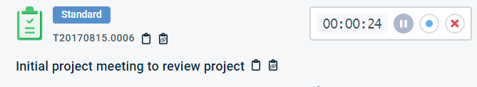 | Bearbeiten | Klicken Sie, um die Aufgabe in den Bearbeitungsmodus zu setzen, damit Sie Änderungen an den Aufgabenfeldern vornehmen können. Die Stoppuhr läuft weiter. Siehe Eine Aufgabe hinzufügen oder bearbeiten. |