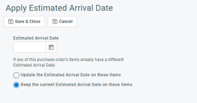Wählen Sie ein Optionsfeld aus, um festzulegen, was das System unternehmen sollte, wenn einer der Posten bereits über ein geschätztes Eingangsdatum verfügt.