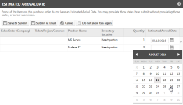 - Geben Sie ein Datum für einige oder alle Posten an und klicken Sie dann auf Speichern & Einreichen oder Einreichen & E-Mailen.