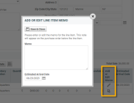 in der Spalte Memo hinzufügen oder Memo bearbeiten und geben Sie ein geschätztes Eingangsdatum für den Artikel ein. Um ein vorhandenes geschätztes Eingangsdatum zu bearbeiten, klicken Sie auf das Bearbeitungssymbol
