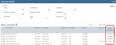 Das geschätzte Eingangsdatum ist in der Spaltenauswahl verfügbar.