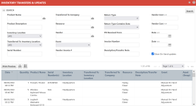 Die Seite Bestandstransfers & -aktualisierungen ist eine schreibgeschützte Seite, auf der das Verschieben und Aktualisieren von bereits sortierten Artikeln in Ihrer Datenbank erfasst wird. Die Erfassung beginnt, wenn der Bestandsartikel und Lagerartikel erstellt werden, und folgt dem Lagerartikel über den gesamten Lebenszyklus. Sie können verfolgen, wie ein Lagerartikel mit Seriennummer in Ihren Bestand ein- und ausgelagert wird, indem Sie nach der Seriennummer suchen.