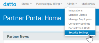 Gehen Sie im Partner Portal zu Admin > Sicherheitseinstellungen.
