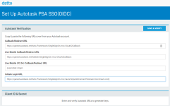 Klicken Sie auf SetUp Autotask SSO). Die OIDC-Konfigurationsseite wird geöffnet.