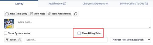 Dieses Kontrollkästchen schaltet die Anzeige des Kontrollkästchens Abrechnungsdaten anzeigen im Aktivitäts-Feed um, um zu verhindern, dass der Mitarbeiter Abrechnungsdaten sieht.![]()