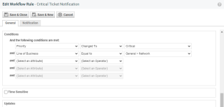 - Wenn eine inaktive Geschäftssparte oder keine Geschäftssparte erstellt wird, wird die vorhandene Geschäftssparte nicht vom Ticket entfernt.