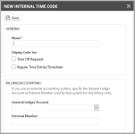 - Von der Dropdown-Liste Neuer Artikel Interne Zeitkategorie auswählen. Zum Bearbeiten einer vorhandenen internen Zeitkategorie Bearbeiten vom Kontextmenü auswählen.