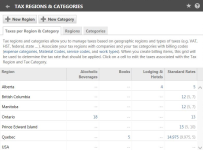 - Navigieren Sie zu Linkes Navigationsmenü > Verwaltung > Verwaltungskategorien > Funktionen und Einstellungen > Finanzen, Buchhaltung und Rechnungsstellung > Steuerregionen und -kategorien und klicken Sie auf die Registerkarte Steuern pro Region und Kategorie.