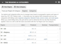 Sobald Ihre Regionen und Kategorien definiert sind, muss jede Steuerkategorie für jede Steuerregion in Ihrem Raster ausgefüllt werden.