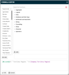 Sie können Formeln manuell LiveReports hinzufügen oder indem Sie den Formeleditor in der Symbolleiste des Designers auswählen. Mithilfe des Formeleditors können Sie Ihre Formel erstellen, indem Sie die gewünschten Funktionen aus den angegebenen Optionen auswählen. Um die Seite zu öffnen, nutzen Sie den/die Pfad(e) im vorstehenden Abschnitt Sicherheit und Navigation.