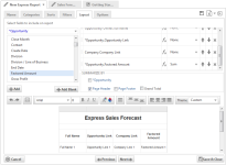 | Reihenfolge | Verwenden Sie die Pfeile nach oben und unten, um die Reihenfolge der Felder im endgültigen Bericht anzugeben. Sie können die Felder auch nach oben und unten verschieben, indem Sie den Ziehpunkt links neben dem Feldnamen anfassen. Die in diesem Abschnitt von oben nach unten aufgelisteten Datenfelder werden im Bericht von links nach rechts angezeigt. |