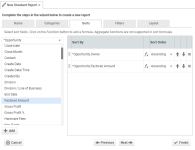 | Wählen Sie ein Feld aus und klicken Sie auf Hinzufügen, doppelklicken Sie oder verschieben Sie per Drag & Drop in den Bereich Sortieren nach. | |