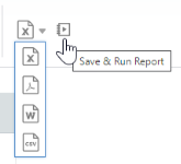 | Bericht exportieren | Klicken Sie, um den Bericht zu speichern und in die im Fenster Berichtsoptionen > Optionen > Allgemein aktivierten Dateiformate zu exportieren. Wenn keine Exportoptionen zugelassen sind, wird die Schaltfläche „Exportieren“ nicht angezeigt. Siehe Optionen für die Berichtsausgabe einstellen. |
