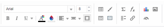 | Andere Symbole | Markieren Sie eine oder mehrere Zellen (Umschalt + Klick oder STRG + Klick für nicht aufeinanderfolgende Zellen), und klicken Sie auf ein Symbol, um eine Schrift auszuwählen, den Text zu formatieren, auszurichten und einen Zeilenumbruch in den Zellen vorzunehmen, die Zahlenformatierung zu bestimmen sowie die Zellenränder und -farben zu formatieren. Die Formatierungstools werden allen Benutzern vertraut sein, die Formatierungstools in Microsoft Excel verwendet haben. Fahren Sie mit der Maus über ein Symbol, um den Namen des Tools anzuzeigen. Die Optionen zum Verbinden oder Teilen von Zellen sowie für den Zeilenumbruch sind nicht in Schnellberichten verfügbar. |