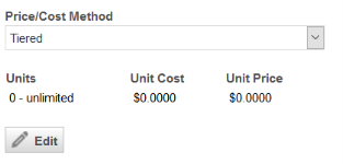 | Preis-/Kostenmethode | Preis-/KostenmethodeArtikel: Wählen Sie die Preismethode für diesen Artikel aus den folgenden Optionen aus: