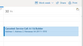 HINWEIS Stornierte Servicetermine werden aus LiveMobile und Outlook entfernt, wenn Sie jedoch die Exchange-Integration nutzen, bleibt der Servicetermin im Zeitplan (wobei „Storniert“ davor steht).![]()