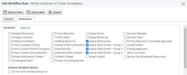 Mithilfe dieser Felder können Sie bis zu 4 Gruppen mit E-Mails durch Komma oder Semikolon getrennt eingeben, die bei Benachrichtigungen über Service Desk-Workflow-Regeln verwendet werden. Sie können E-Mails in ein beliebiges Feld eingeben und müssen nicht zuerst das Feld Andere E-Mails ausfüllen. Wenn Sie eine Workflow-Regel für Tickets erstellen oder bearbeiten, stehen diese E-Mail-Adressen für Benachrichtigungen in der Liste der dynamischen Empfänger zur Verfügung, wenn Queue-bezogene Ereignisse eintreten. |