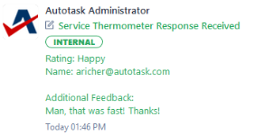 Das Service-Barometer von Autotask ist dazu gedacht, Ihren Kunden eine Feedback-Option zu bieten, die nur zwei Klicks mit der Maus erfordert.