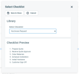 - Klicken Sie auf Speichern & Schließen, um die Checkliste zu Ihrem Ticket, Ihrer Aufgabe oder Ihrer Verkaufschance hinzuzufügen.