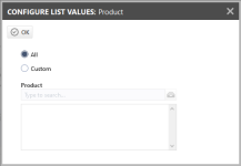 - Alle bedeutet, dass das Feld über ein Menü oder eine Auswahl verfügt, das bzw. die es dem Benutzer gegenwärtig ermöglicht, aus allen möglichen Einträgen auszuwählen.
