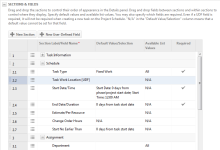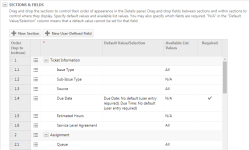 Es gibt drei feldbezogene Eigenschaften, die Sie möglicherweise für Felder bearbeiten können, die Sie im Detailbereich beinhalten: Standardwerte, Verfügbare Listenwerte und der Status Erforderlich. ![]()