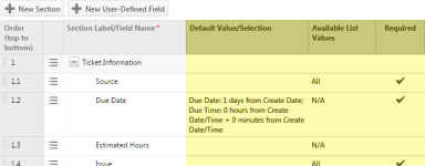 Der Standardwert wird bei allen neuen Einträgen, die mit der Rubrik verbunden sind, im Feld eingetragen, es sei denn, er wird manuell oder von einer Formularvorlage überschrieben. Alle Feldtypen können Standardwerte haben. Wenn eine neue Rubrik manuell einem vorhandenen Ticket beim Bearbeiten des Tickets zugewiesen wird, werden die Standardfeldwerte der neuen Rubrik nicht auf das Ticket angewandt.