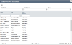 Im Auswahlfenster für verantwortliche und zusätzliche Mitarbeiter können Sie Mitarbeiter nicht nur anhand vom Namen auswählen, sondern auch anhand ihrer Zuweisung zu einer bestimmten Abteilung, Arbeitsgruppe oder Queue.
