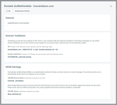 - Die DKIM-Domänenauthentifizierung ist optional. Dadurch wird eine zusätzliche Sicherheitsebene hinzugefügt, aber Sie sind auf 5 Domains beschränkt, zusätzlich zu den beiden Systemdomains, die bereits authentifiziert sind.
