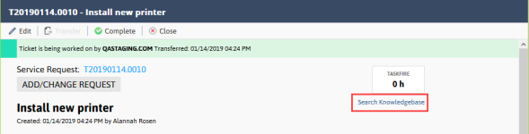 Ihre Kundenbenutzer können außerdem ganz einfach auf Ihre Knowledge Base über die Schaltfläche Knowledge Base-Suche auf dem Formular für Serviceanfragen zugreifen: