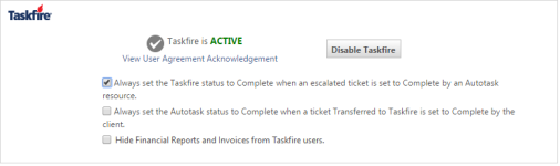 Den Taskfire-Status immer auf abgeschlossen setzen, wenn ein eskaliertes Ticket von einem Autotask-Mitarbeiter auf abgeschlossen gesetzt wird. |