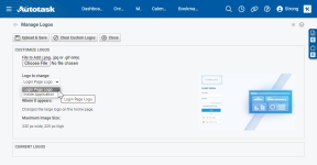 - Wählen Sie in der Dropdown-Liste Zu änderndes Logo das Logo aus, das Sie ändern möchten. Die Vorschau auf der rechten Seite zeigt Ihnen, welches Logos Sie ändern, und Wo es erscheint zeigt an, wo das Logo dargestellt wird.