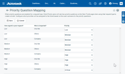 Prioritätsfragen werden pro Anfrageart aktiviert oder deaktiviert. Wenn sie aktiviert sind, ersetzen sie bei dieser Anfrageart das Feld Priorität auf der Kundenportal-Seite Neues Ticket. Siehe Abschnitt „Prioritätsfragen“.