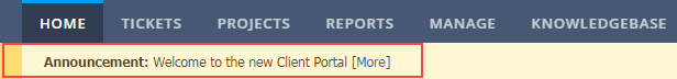 Kundenportalbenutzer werden eine einzeilige „Ankündigung“ im Kundenportal sehen: