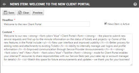 - Klicken Sie auf die Schaltfläche Vorschau, um das News-Item aus Sicht des Kundenportalbenutzers zu sehen.