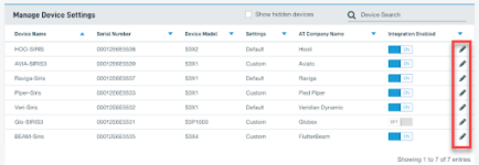 - Um die Warnungen für ein Gerät zu aktivieren, drücken Sie den Schieberegler in der Spalte Integration aktiviert nach rechts. Jedes Gerät muss separat aktiviert werden.