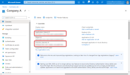 Direkt unter dem Anzeigenamen sehen Sie die Anwendungs-ID und Verzeichnis-ID (Mandant), die Sie in die Konfigurationsseite für das PSA MS Exchange-Erweiterungsmodul kopieren müssen.