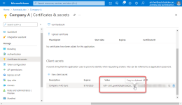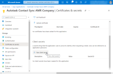 - Klicken Sie im Abschnitt Clientgeheimnisse auf Neues Clientgeheimnis.
